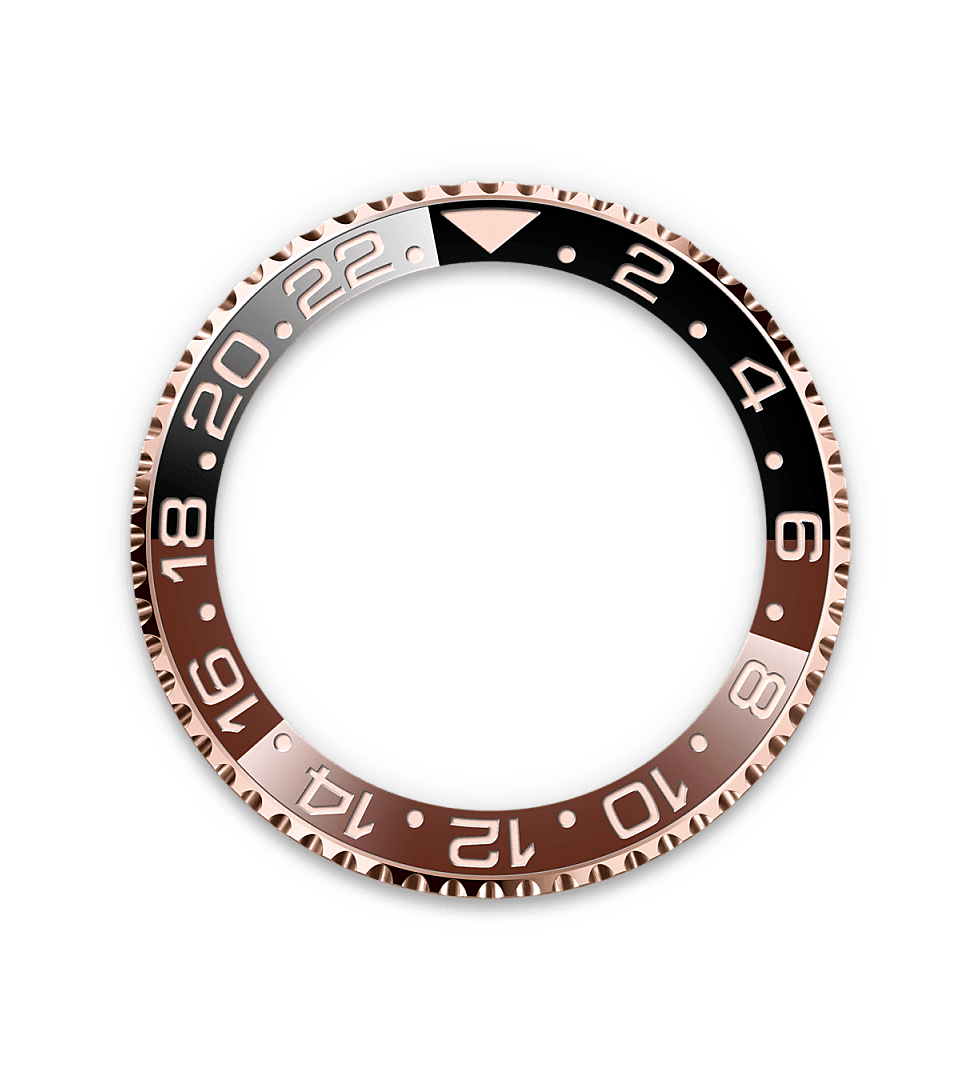 Bezel: Bidirectional rotatable 24-hour graduated bezel. Two-colour brown and black Cerachrom insert in ceramic, moulded numerals and graduations